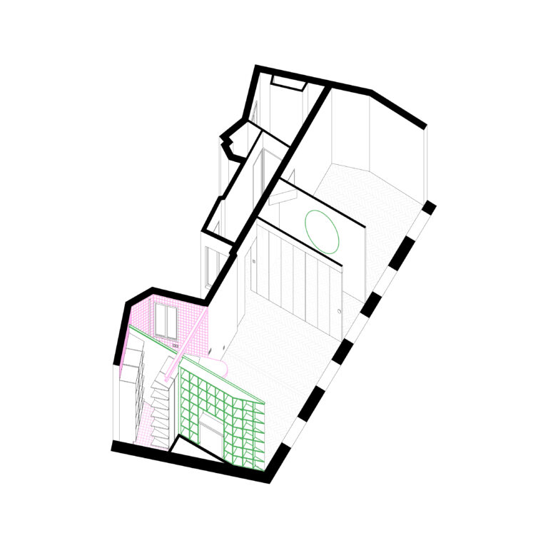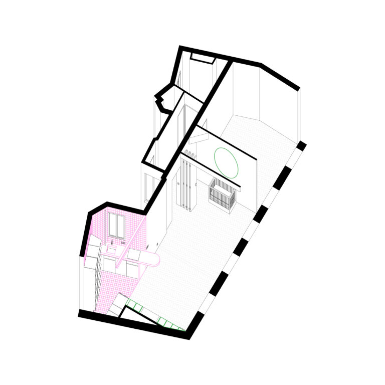 The Villette project is about the adaptation of the space to the life change of its owners, like the arrival of a baby. Rather than moving for a bigger apartment the clients wanted to question the potential of their existing apartment.